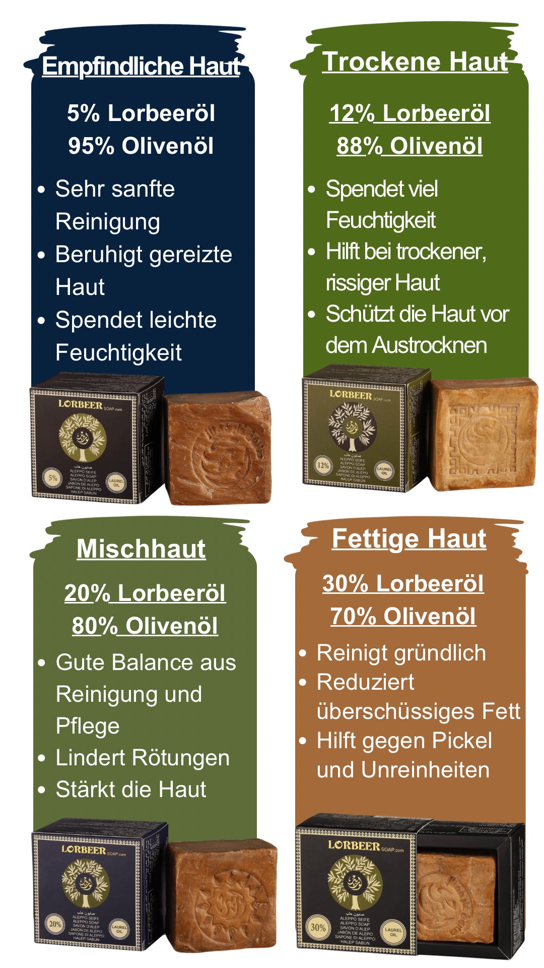 Weiter lesenMit unterschiedlichen Anteilen an Lorbeeröl bietet jede Sorte spezifische Vorteile für verschiedene Hauttypen